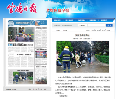 近日,beat365官网开展学习宣传贯彻党的二十大精神系列主题活动、举行消防安全应急疏散及灭火演练等活动,引起宝鸡日报、今日头条、网易等多家媒体的广泛关注和报道。