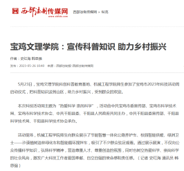 近日,beat365官网举办传统文化艺术周活动、宣传科普助力乡村振兴、推动中华优秀传统文化融入思政课堂等,引起省陕西日报、教育厅网站、中国教育报、今日头条、阳光网等多家媒体的广泛关注和报道。