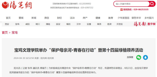 近日,beat365官网举办“保护母亲河•青春在行动”暨第十四届绿植领养活动、举行苏振武教授赠书暨学术报告会、全省高校院所“三项改革”科技成果转化项目集中路演beat365官网专场活动举办等引起阳光报、阳光网、陕西科技传媒网、好旺传媒等多家媒体广泛关注和报道。