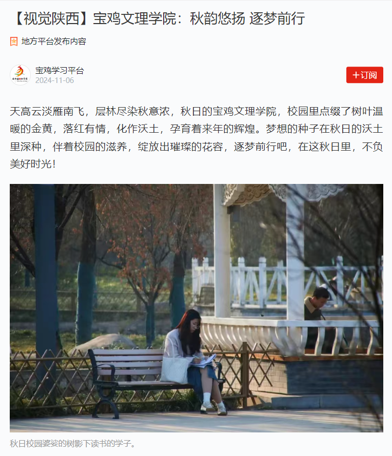 学习强国-宝鸡学习平台 链接:https://article.xuexi.cn/articles/index.html?art_id=16142578469914496123&cdn=https%3A%2F%2Fregion-shaanxi-resource&item_id=16142578469914496123&study_style_id=feeds_opaque&t=1730885289746&showmenu=false&ref_read_id=da6eecc6-fdf6-4124-86ba-bb48dbbd5733_1730888031719&pid=&ptype=-1&source=share&share_to=wx_single