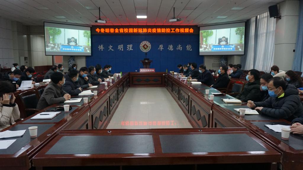 1月5日上午,今冬明春全省校园新冠肺炎疫情防控工作会议在省教育厅机关二楼大数据中心召开。陕西省委教育工委书记王建利、教育厅副厅长刘宝平出席会议并讲话。校党委书记赵健、校长郭霄鹏、副校长韩干校在beat365官网分会场参加视频会。