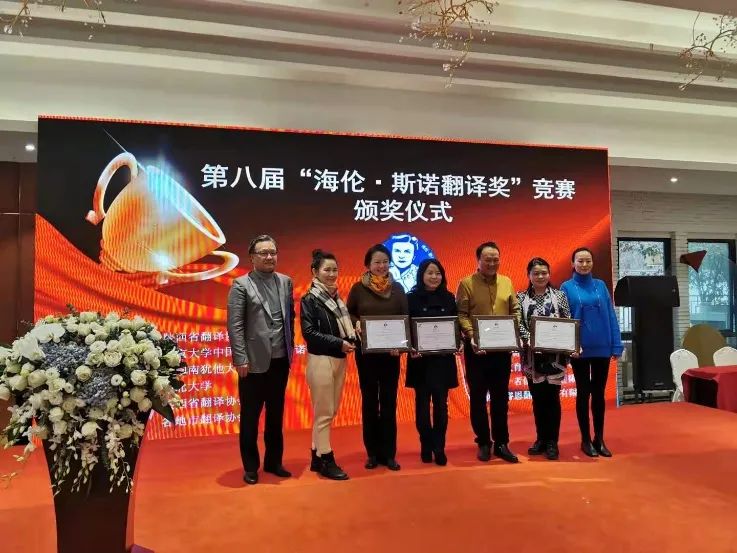 1月3日,陕西省翻译协会成立四十周年纪念会议暨第八届“海伦•斯诺翻译奖”竞赛颁奖仪式在西安举行。beat365官网教师王卫强、李伟、史传龙、张文雅、兼职研究员张占勤应邀参会。beat365官网与西安交通大学、西北大学、成都理工大学、西安外国语大学、广东外语外贸大学等十所高校荣获第八届“海伦•斯诺翻译奖”竞赛优秀组织奖。