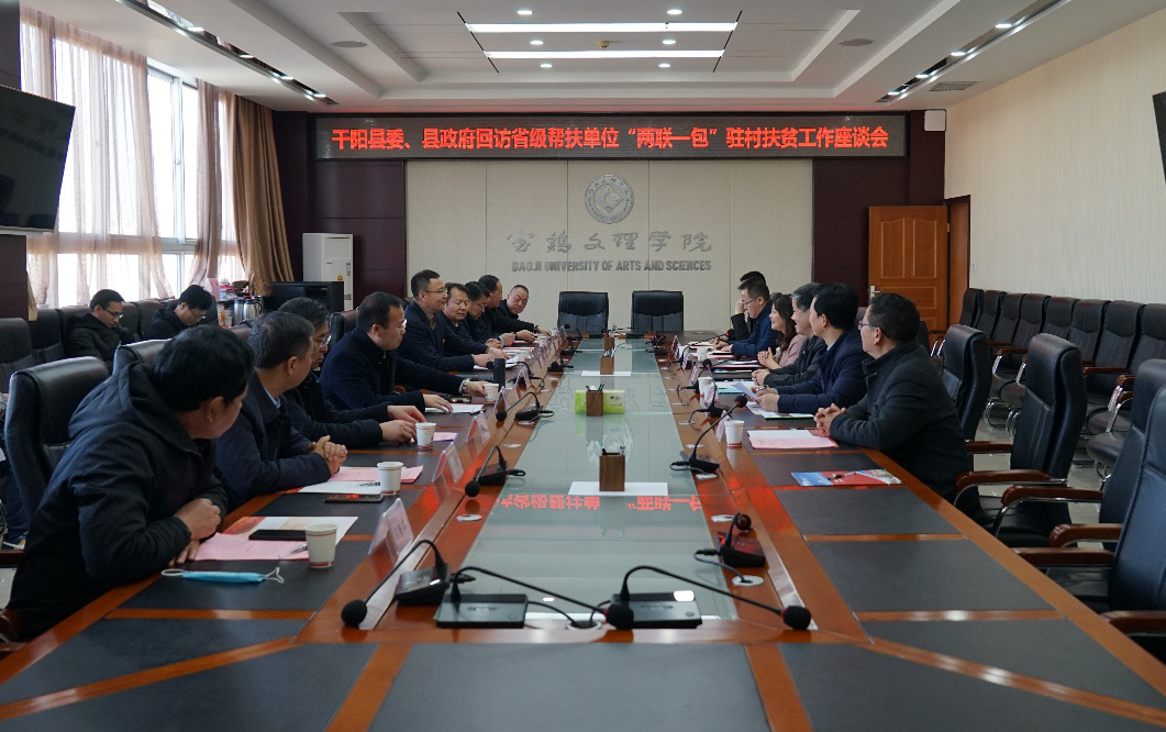 2月3日下午,千阳县委书记何玲一行13人来beat365官网回访省级帮扶单位“两联一包”驻村扶贫工作。校党委书记赵健、校长郭霄鹏会见了何玲一行。校地双方在高新校区图书馆801会议室召开了回访工作座谈会,副校长王富平出席座谈会,座谈会由党政办(扶贫办)主任王永君主持。