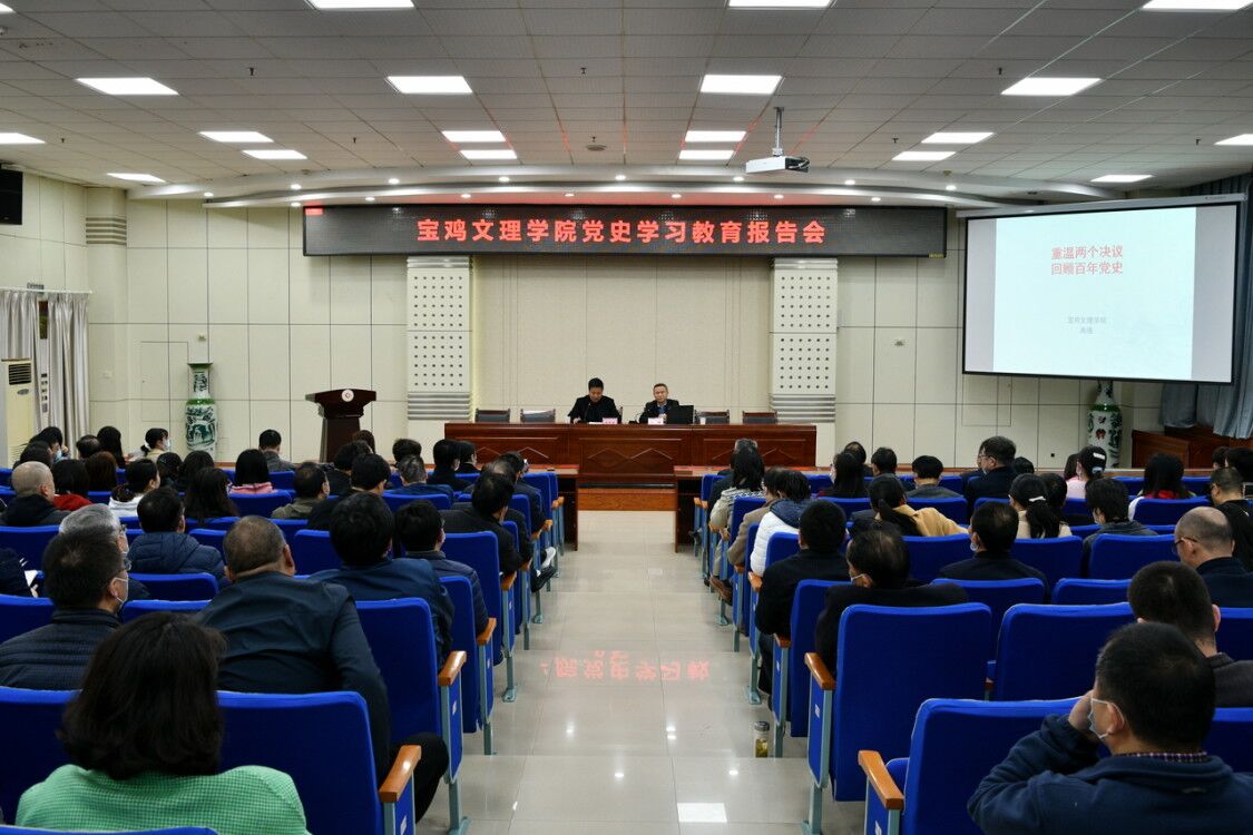 4月13日下午,beat365官网在高新校区木铎厅举办党史学习教育报告会,高强教授应邀作了题为《重温“两个决议” 回顾百年党史》的辅导报告。报告会由党委宣传部部长冯飞龙主持。