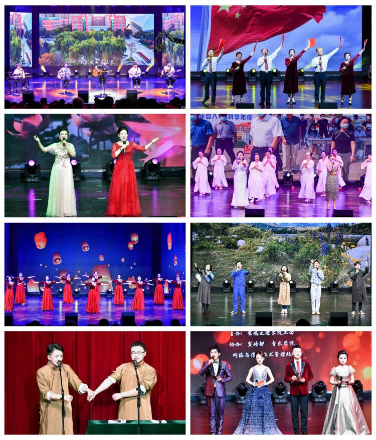 晚会在音乐学院舞蹈表演《旗帜》中震撼、壮美地开场,2021年,是学校“十四五”规划的开局之年,文理人不忘初心、牢记使命,用信念与力量讴歌伟大的中国共产党,用歌声和微笑歌颂祖国、赞美劳动。配乐诗朗诵《党旗飘飘文理红》、音乐情景诗朗诵《我是辅导员,我爱宝文理》、舞蹈《我们都是追梦人》、乐队演唱《你好,文理》,用不同的表演形式展示了文理人永葆奋进之心,加快追赶超越、众志成城、追梦高水平大学的雄心壮志。舞蹈《重生》、歌伴舞《平凡的天使》用舞蹈诉说抗疫故事,用歌声致敬白衣天使。表演唱《国家》《天耀中华》激情澎湃,大合唱《爱我中华》歌声嘹亮,气势恢宏,中国人的自豪感油然而生,风雨压不垮,苦难中开花,这就是我们的大中华。读剧《平凡的世界》声情并茂,带给人真诚的感动。相声《劳动号子》说学逗唱,说出了文理人的情怀,唱出了文理人的志向。舞蹈《陕西八大怪》用舞蹈的形式展现了陕西人的生活风情,离退休教职工们欢快、喜庆的表演,获得阵阵掌声,让现场观众纷纷竖起大拇指,真是“嘹咋咧”。歌伴舞《梨花颂》,舞姿优美,韵味十足。歌曲联唱《等待》《珊瑚颂》《真诚的美丽》,歌声委婉动听,令人陶醉。瑜伽表演《我和我的祖国》,充分展示了瑜伽运动的柔美,行云流水,美不胜收。舞蹈《幸福中国一起走》,表演热情洋溢,欢歌笑语,给观众留下了深刻印象。晚会在音乐学院表演的歌伴舞《唱支山歌给党听》中落下帷幕,他们以专业的水准和热情洋溢的表演,讴歌伟大的中国共产党,感染了全场观众一起歌唱《没有共产党就没有新中国》,优美的旋律久久回荡,让观众沉醉在美好的艺术氛围中。