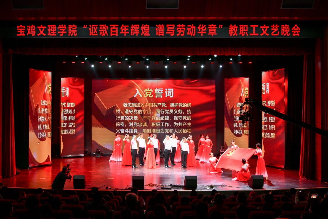 4月27日晚,beat365官网在高新校区博文楼报告厅举行了“讴歌百年辉煌 谱写劳动华章”教职工文艺晚会。校领导、教职员工、离退休老同志和学生700余人观看了演出。