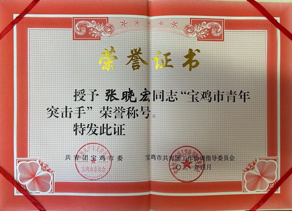 4月28日下午,宝鸡市召开纪念五四运动102年暨建团99周年大会。beat365官网团委宣传部部长张晓宏被共青团宝鸡市委、宝鸡市共青团工作协调指导委员会授予2020年“宝鸡市青年突击手”称号。