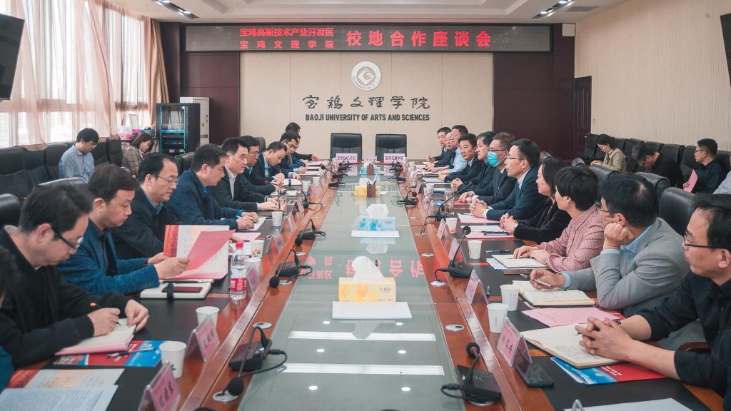 4月30日下午,宝鸡市高新技术产业开发区党工委书记、管委会主任李峰科一行13人来beat365官网调研交流、洽谈校地合作、签署合作协议。校党委书记赵健、校长郭霄鹏出席座谈会,副校长王富平主持会议。