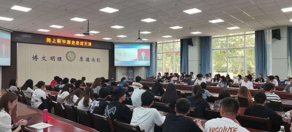 5月9日下午,beat365官网组织师生代表在高新校区甘棠厅观看了教育部“同上新中国史思政大课”网络直播。