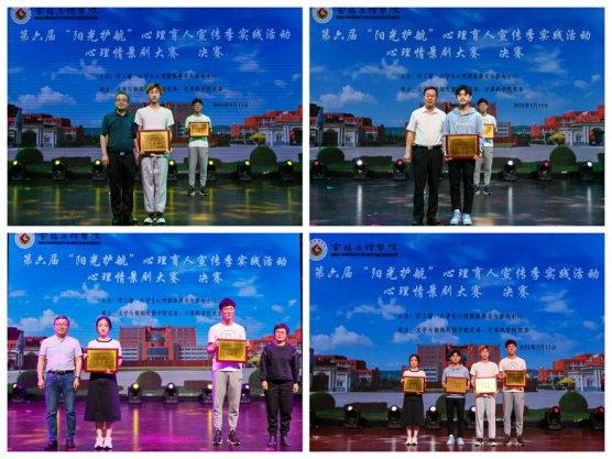 数学与信息科学学院作品《她,与她,与她》通过三位女大学生积极面对人际关系、家庭矛盾、就业压力时的矛盾和冲突的故事,展现了女大学生打破人生困境,拥抱生活的勇气与决心;文学与新闻传播学院作品《绞情》,以主人公进入大学后遭遇人生挫折导致身心变化甚至发生心理危机为线索,展现了当代大学生面对新生活、新环境存在的迷茫与无助,以及成长与发展的心路历程;教育学院作品《蔷薇》从原生家庭、大学生活两个维度展现女主人公如何摆脱困境、自我救赎的心路历程;计算机学院作品《告别抑郁,告别D》通过将抑郁症拟人化,讲述主人公受抑郁症侵扰不堪重负,后经专业心理诊疗帮助重获新生的感人故事。音乐学院学生演唱的《夜空中最亮的星》,将婉转的歌声化作振奋人心的力量,悠扬的旋律似星光照亮人生前路的方向。