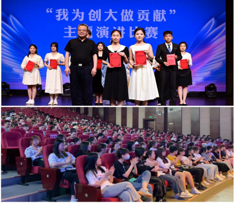 本次比赛由校团委主办,文学与新闻传播学院团总支承办,经过初赛、复赛的层层选拔,在决赛中,来自全校各学院的14名选手为现场观众带来了一场精彩的思想盛宴。选手们紧紧围绕“我为创大做贡献”这一主题,通过简洁凝练的语句、饱含热情的演讲,表达了浓厚的爱校荣校情怀,比赛现场精彩纷呈、高潮迭起。选手们的精彩表现赢得了现场观众热烈的掌声。