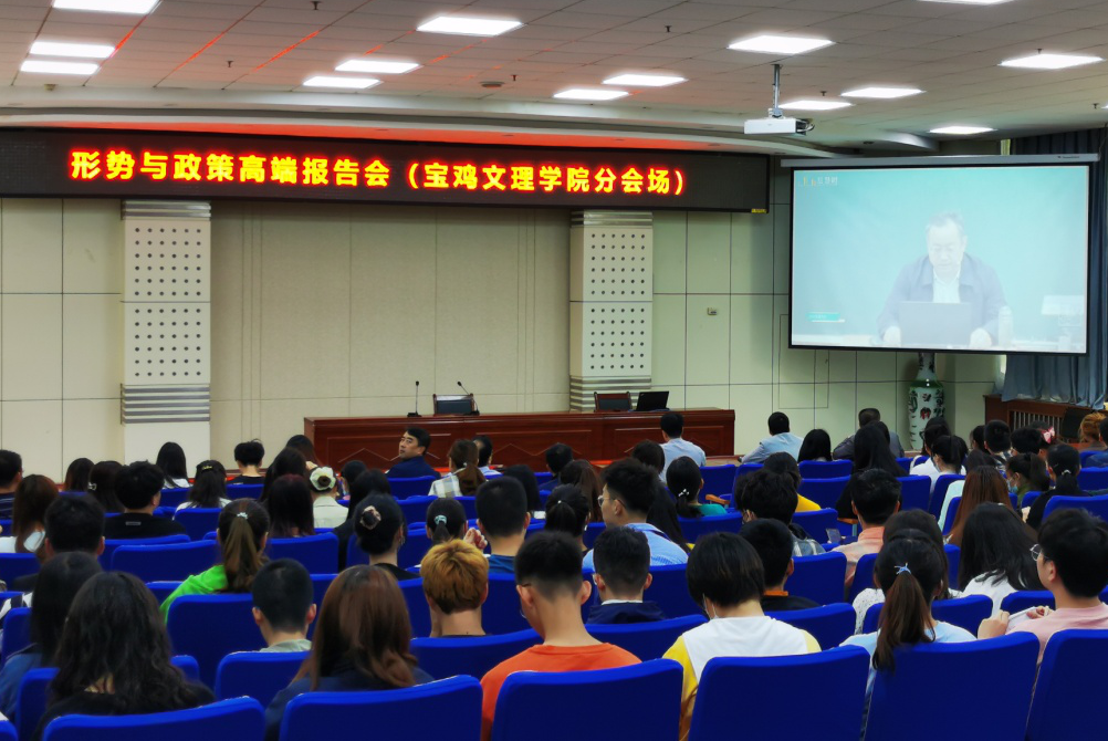 5月23日上午,beat365官网组织师生代表在高新校区木铎厅观看了由省委教育工委主办的“形势与政策高端报告会”网络直播。