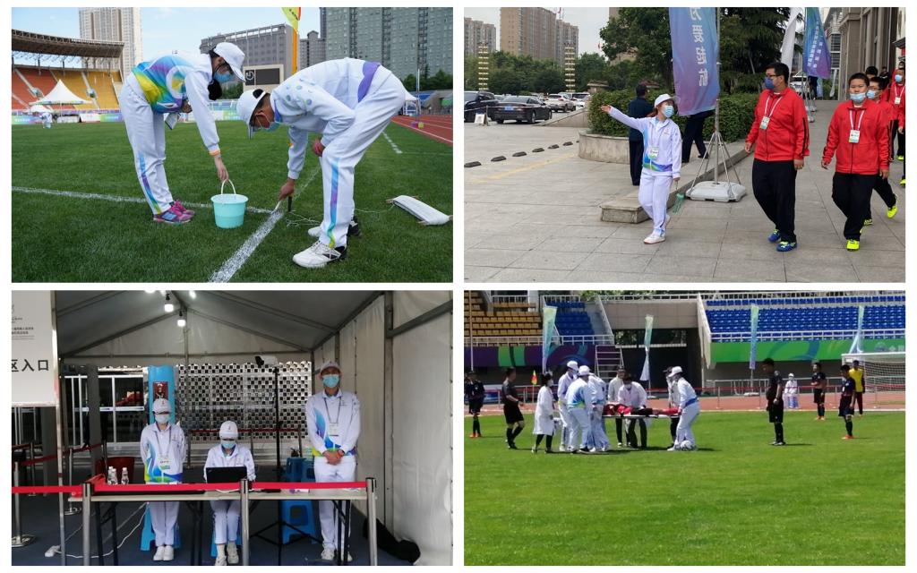 本次赛会180余名 “小秦宝”以“点亮梦想,为爱起航”为主题,围绕“奉献、友爱、互助、进步”的志愿精神,积极投身于竞赛协助、行政接待、医疗保障等10个中队。他们用10个不同颜色的手环来区分志愿者的岗位职责,以高度的责任感投入全国特奥会足球项目志愿服务中,以良好的精神状态、扎实的专业素养和热情细致的服务圆满地完成了赛会志愿服务工作,向来自全国各地的嘉宾展现了文理学子昂扬向上的精神面貌,彰显了宝鸡文化与城市形象,赢得了赛会组委会和各代表队的充分肯定。