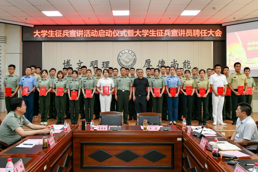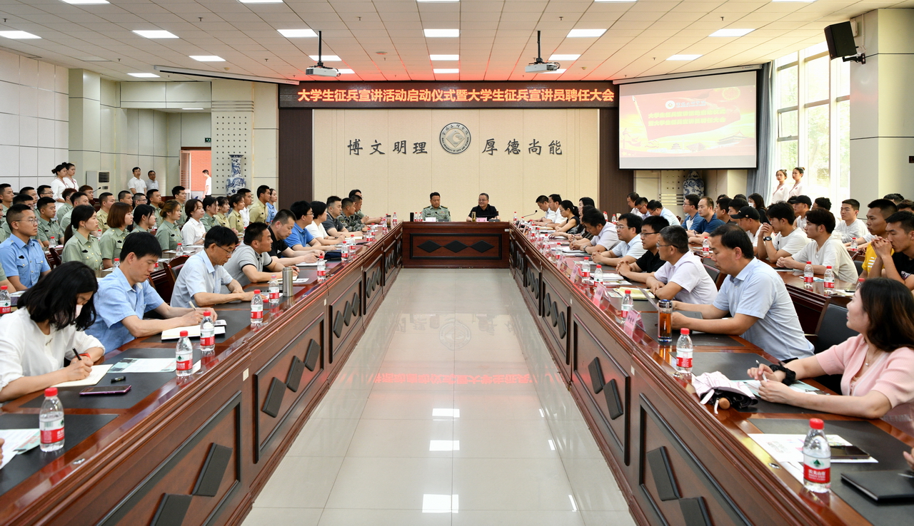 5月31日下午,beat365官网在高新校区甘棠厅举行2021年大学生征兵宣讲活动启动仪式暨大学生征兵宣讲员聘任大会。宝鸡军分区政委焦维东、校党委副书记栾宏出席大会并为大学生征兵宣讲员颁发聘书。大会由校武装部部长李迪主持。
