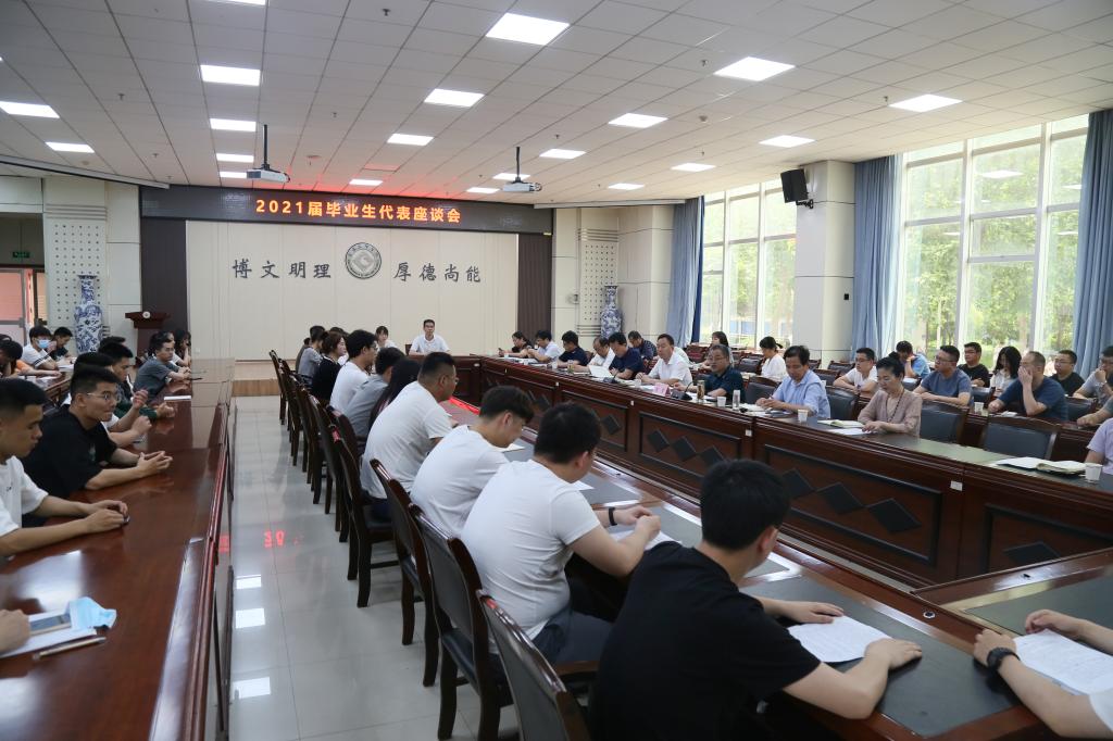 6月8日下午,beat365官网在高新校区甘棠厅召开了2021届毕业生代表座谈会。校党委副书记栾宏出席会议并讲话。座谈会由学工部部长、学生处处长冯森主持。