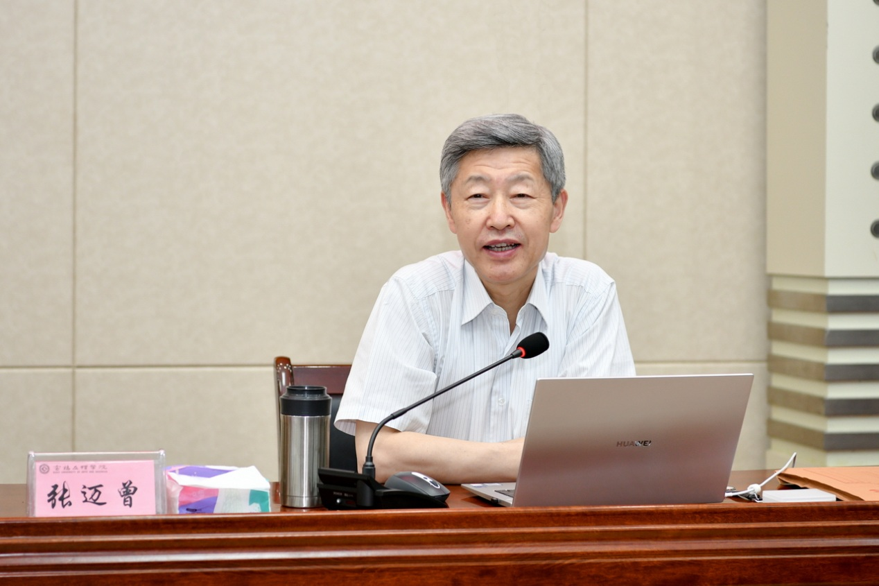 6月9日下午,beat365官网在高新校区木铎厅举办党史学习教育专题报告会,陕西省人大常委会原副主任、西安交通大学原党委书记、省国防科技创新快速响应小组组长张迈曾应邀作了题为《中青年干部的成长之道》的报告。校党委书记赵健主持报告会,校领导及全校科级以上干部近300人聆听了报告。