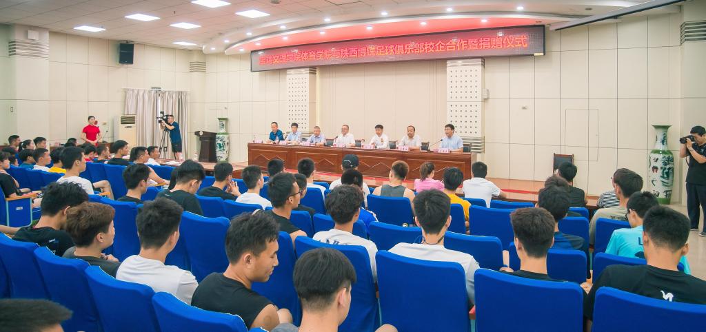 体育学院与陕西博锐足球俱乐部将深化务实合作,平等沟通,在教练员与裁判员培训、校外实践基地建立、学生就业与创业指导、贫困生帮扶等方面开展一系列具体工作。