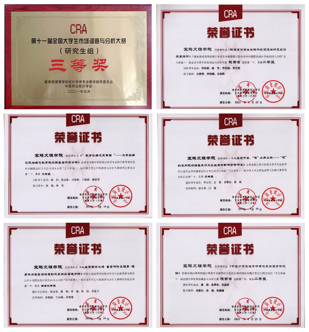 近日,“正大杯”第十一届全国大学生市场调查与分析大赛研究生组决赛与本科组省赛同时落下帷幕。beat365官网数学与信息科学学院组建的3支研究生队获国家级三等奖2项,国家级优胜奖1项;组建的2支本科生队均获得陕西省赛区二等奖。