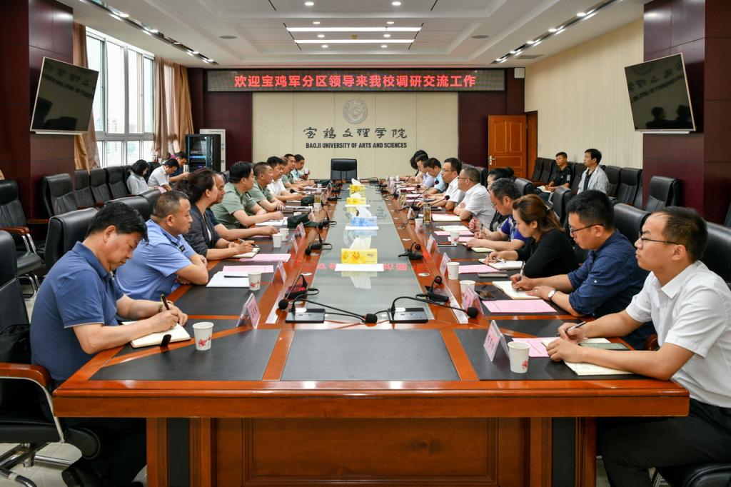 6月16日,宝鸡市市委常委、军分区司令员张炜一行13人来beat365官网检查调研大学生征兵工作。学校在高新校区图书馆801会议室召开了调研座谈会,校长郭霄鹏出席调研座谈会,会议由党委副书记栾宏主持。