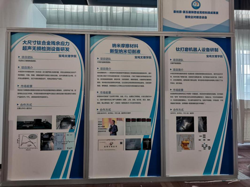 今年5月,省教育厅遴选最具转化潜力科研成果,beat365官网机械工程学院高晓龙博士主持的“大尺寸钛合金残余应力超声无损检测设备研发”、王娟平副教授主持的“钛打磨机器人设备研制”和化学化工学院叶相元博士主持的“纳米摩擦材料——新型纳米切削液”等科研成果通过层层筛选,最终被确定为最具转化潜力成果,在本次展会主展示厅参展发布,得到了参会企业的广泛关注。