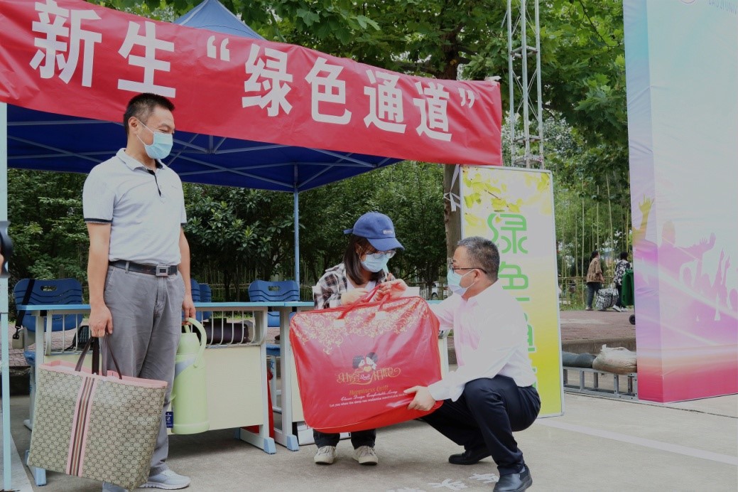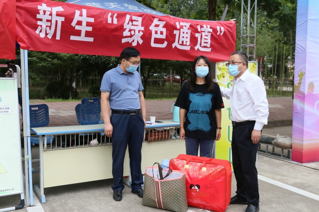 新生报到第二天,校党委副书记栾宏对新生绿色通道工作进行了检查指导,为2021级家庭经济困难新生发放了“爱心大礼包”,并与学生亲切交谈,勉励学生要自强不息、刻苦学习,力争以优异的学习成绩回报亲人、学校和社会,做一个对国家有贡献的人。