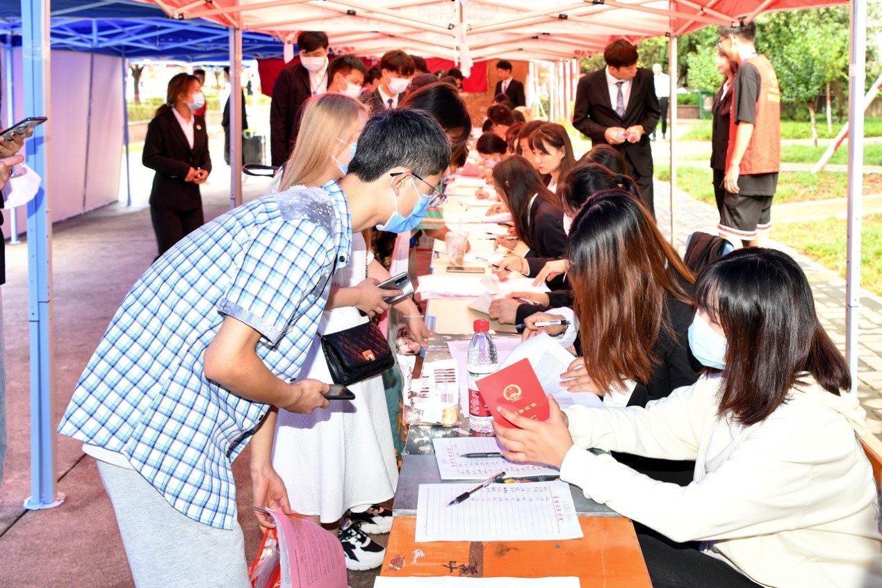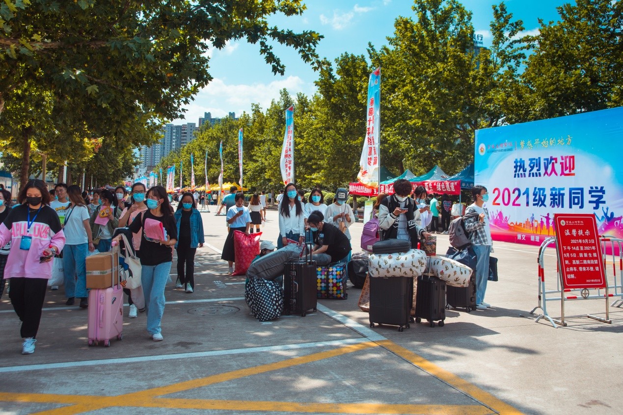 在疫情防控常态化背景下,学校统筹安排迎新期间的疫情防控工作,在校门口实行“一换二消三测四核五进”,进一步加强迎新期间的校门及新生公寓门禁管理,在寄发录取通知书时,提前告知新生家长及陪同人员不能进入校园,得到了新生家长的理解和认可。迎新期间,各部门、各学院的负责老师、同学全面到位,分工协作,积极配合,学生党员干部、志愿者和引导员随处可见。招生就业处积极协调,租用手推车、小型客运车帮助新生搬运行李,受到广大新生的欢迎;宣传部设立广播站、融媒体服务中心,让新生在入校的第一时间了解学校的新闻资讯;学生处、财务处开通绿色通道及时帮助困难新生解答资助政策,确保每一位困难新生顺利入学;保卫处制作了预防电信诈骗展板,联合高新分局开展电信反诈骗宣传;校团委、校学生会和各二级学院组建学生志愿者服务团队,穿梭在人潮中,帮助新生搬运行李,热情引导新生办理入学报到手续,帮助新生适应学校环境,尽快融入大学生活。