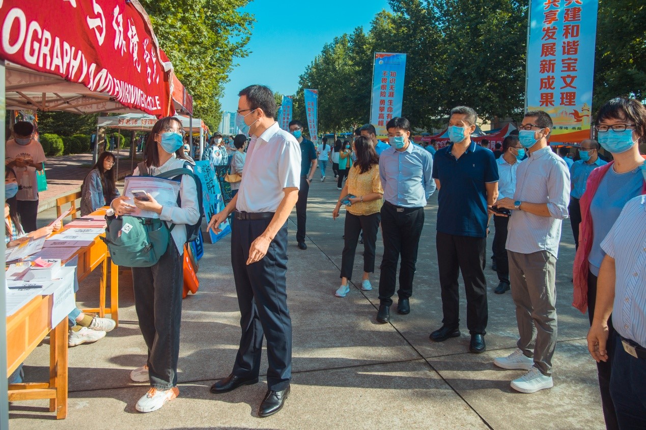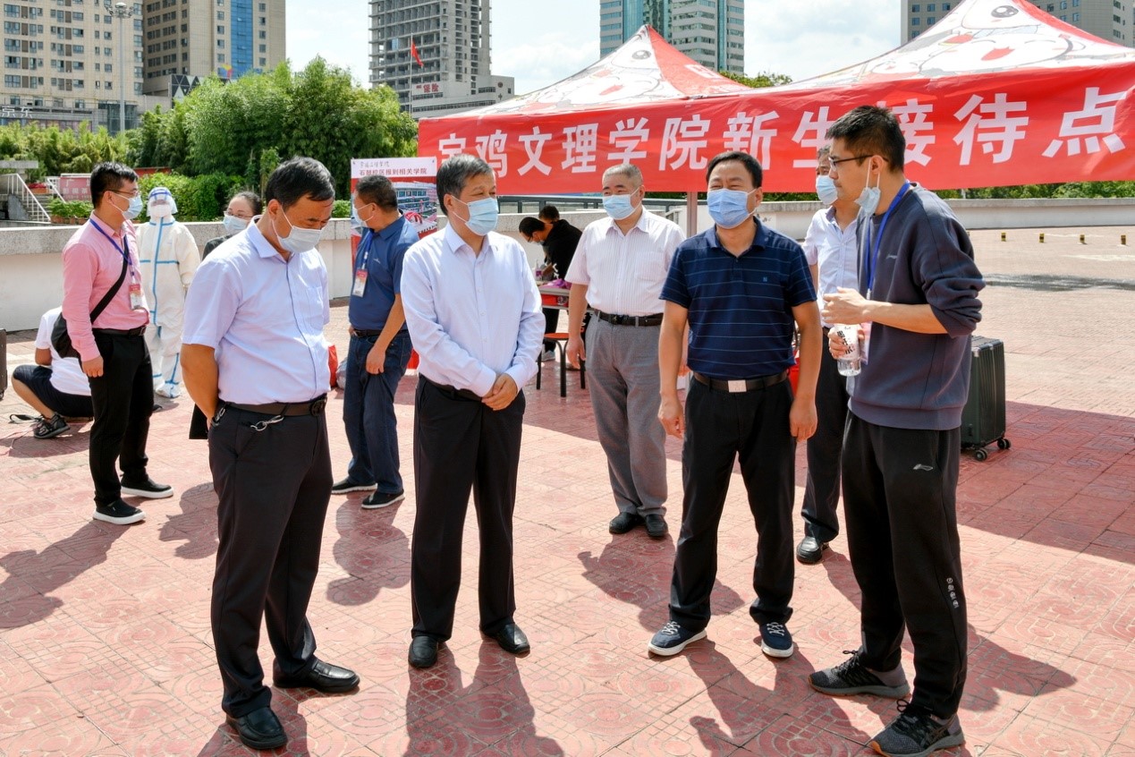 4日一早,迎新大幕正式拉开,校长郭霄鹏,党委副书记栾宏,党委副书记、纪委书记、监察专员段恒春,副校长杨子元、王富平、韩干校等率领相关部门负责人分别前往石鼓和高新校区各二级学院接待点、咨询协调处、军训用品发放点、学生食堂、学生公寓及校外宝鸡火车站、宝鸡南站迎新现场检查指导工作并慰问工作人员和学生志愿者。