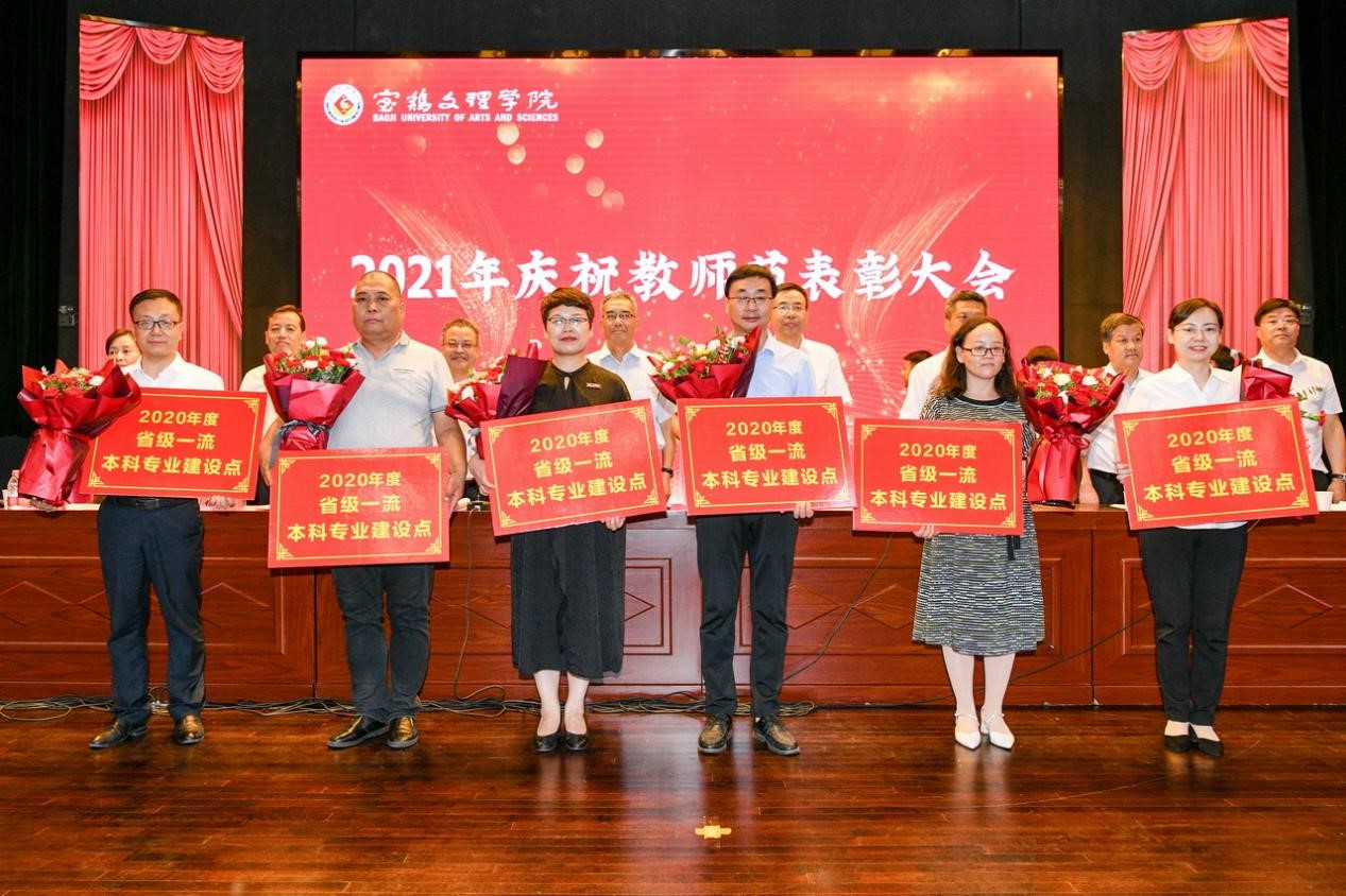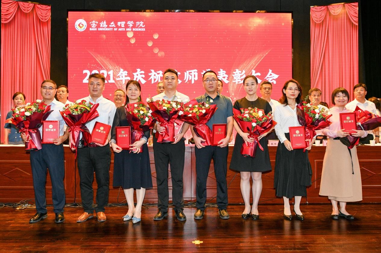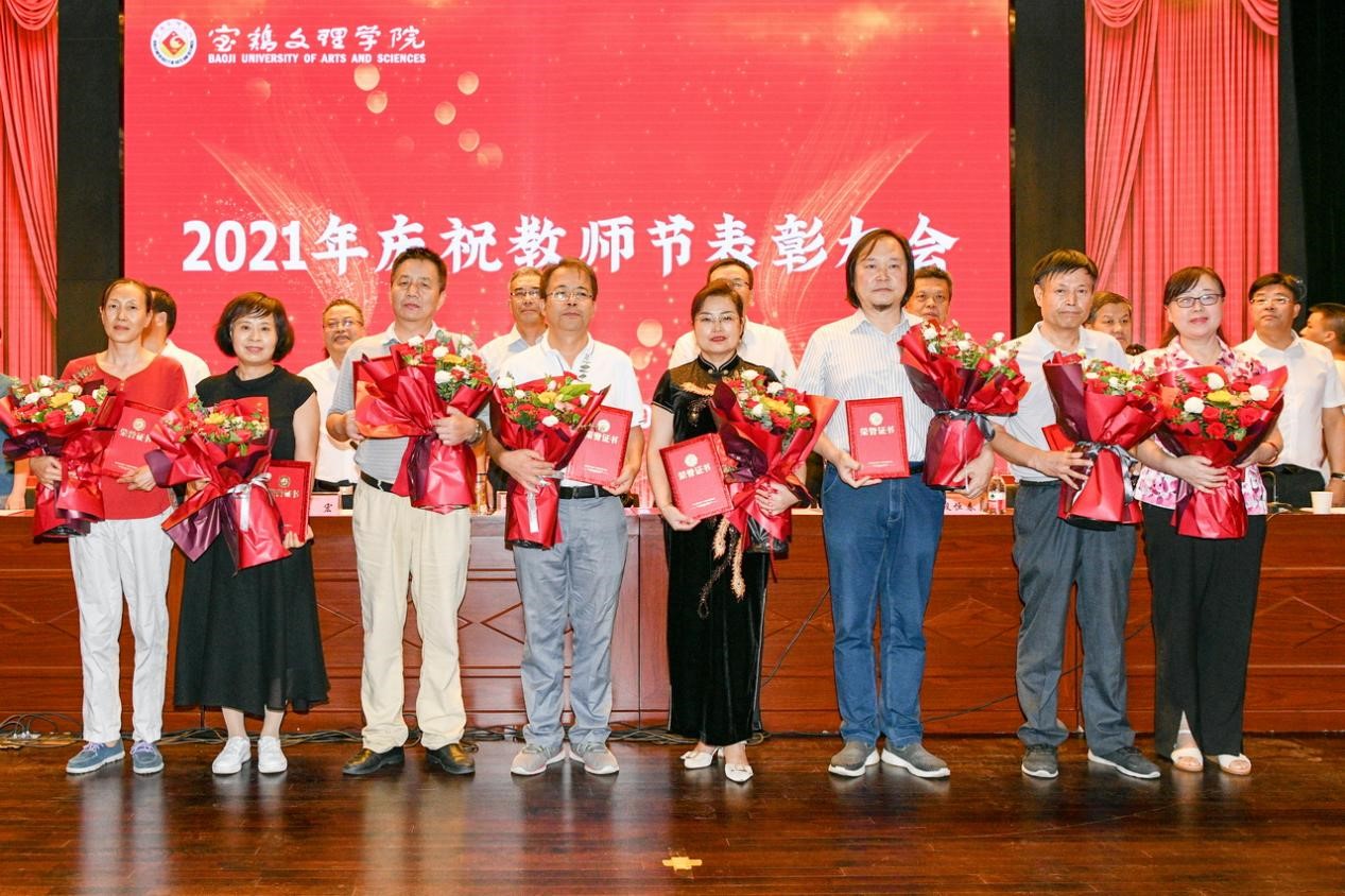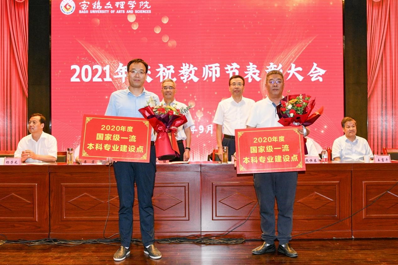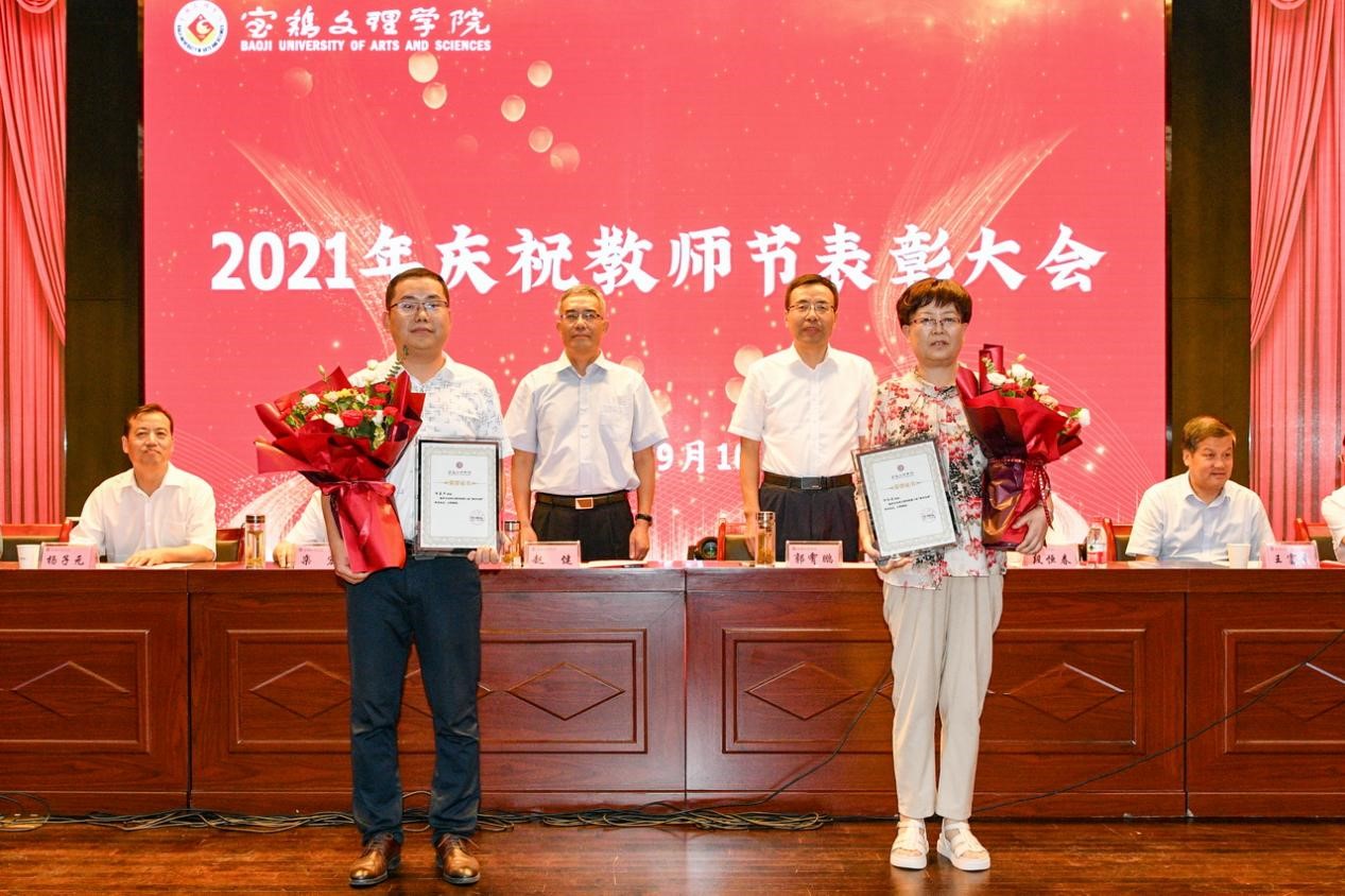 会上,段恒春宣读了《关于表彰2019-2021学年“优秀教师”及 “最受学生欢迎十佳教师”的决定》;杨子元宣读了2020年度国家级一流本科专业建设点、陕西省一流本科专业建设点、陕西省一流本科课程、陕西省课程思政示范课程名单;王富平宣读了beat365在线唯一官网第八届教学名师、本科教学质量优秀奖获得者名单;李景宜宣读了2020、2021年获批省级研究基地和国家级科研项目、陕西青年科技奖、陕西省青年科技新星获得者名单;韩干校宣读了《关于表彰从事教育工作满35年、30年、25年教职工的决定》。大会对获奖者进行了表彰,学生代表为受表彰的老师献花表达节日的祝福。