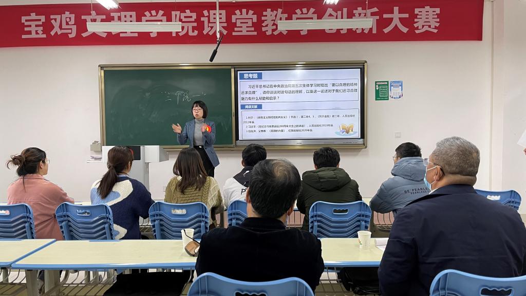 本届大赛以“课堂革命,宝文理在行动”为主题,比赛从2021年9月底开始启动,分为初赛和决赛两个赛程。学院初赛中脱颖而出的50位选手按照课程思政育人示范课程组、文科组、理工科组三个赛道进行决赛,决赛内容包括说课、课堂教学展示和问答三个环节。