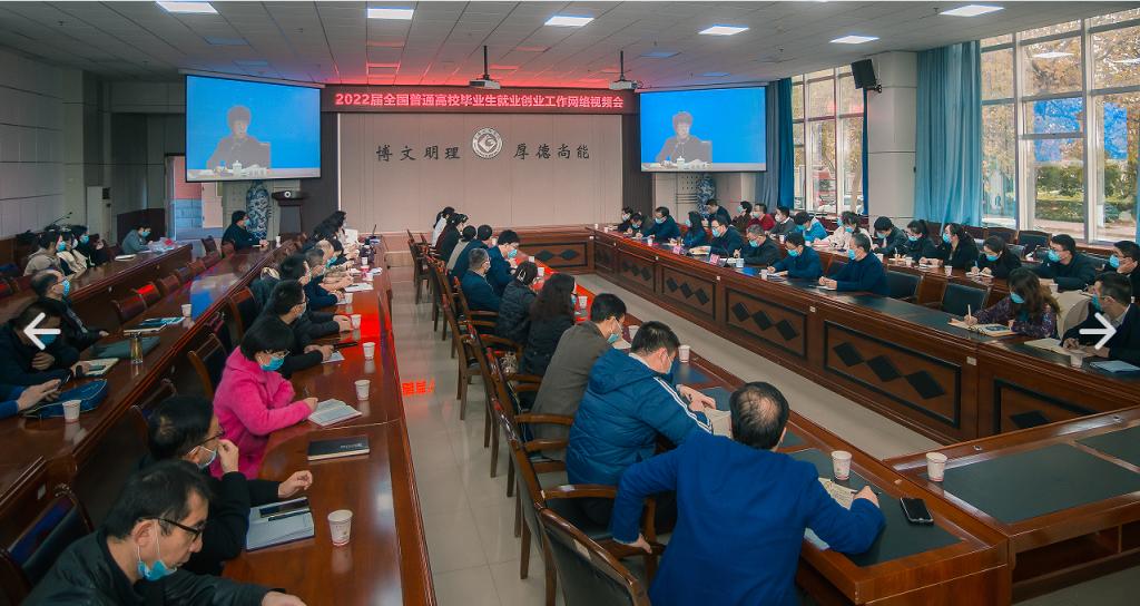 11月19日下午,由教育部、人力资源和社会保障部共同组织的2022届全国普通高校毕业生就业创业网络视频会议在北京召开,教育部党组书记、部长怀进鹏,人力资源和社会保障部副部长李忠出席会议并讲话,会议由教育部副部长翁铁慧主持。beat365官网在高新校区甘棠厅设分会场,校长郭霄鹏、党委副书记栾宏参加了会议。