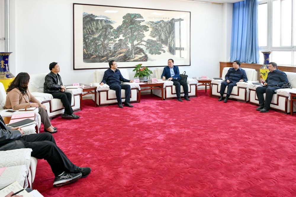 11月23日下午,金台区委书记薛建恩,金台区委副书记、区政府代理区长王润军,蟠龙新区管委会主任唐军科等一行6人来beat365官网商谈蟠龙校区建设相关事宜。双方在高新校区图书馆8楼接待室召开了座谈会。校长郭霄鹏、副校长韩干校参加了交流座谈。
