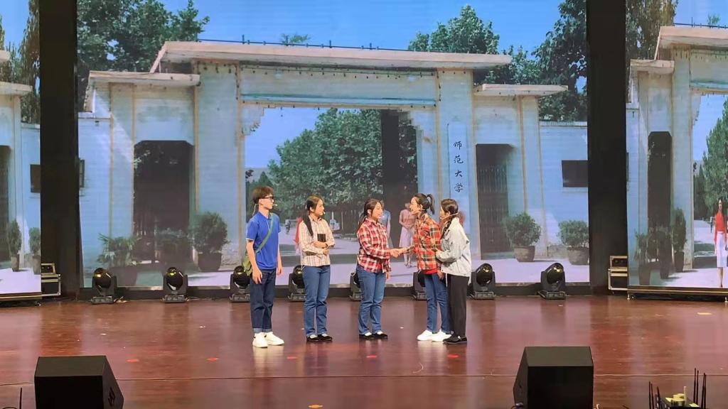 汇报演出分为“红旗初升”“雄狮奋起”“鱼跃龙门”和“巨龙腾飞”等四个篇章,依次展示了中国共产党从建党之初到新中国成立,历经改革开放最终走向中国特色社会主义的峥嵘岁月,节目内容丰富,形式多样,涉及朗诵、配音、话剧、合唱等,表达了全体播音学子对党崇高的敬意和对祖国百年巨变的真挚赞美。演出在“请党放心,强国有我”的铮铮誓言中落下帷幕,也启发青年一代要感恩这个时代,珍惜美好时光,奋发有为。播音生扎实的语言功底和精彩的表演赢得了现场观众的阵阵掌声。