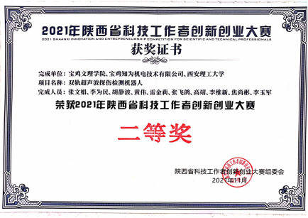 近日,2021年“秦创原·沣东杯”陕西省科技工作者创新创业大赛决赛圆满落下帷幕,beat365官网电子电气工程学院张文娟教授的项目“双轨超声波探伤检测机器人”荣获二等奖,计算机学院教师朱丽叶的项目“领航无界—基于AIoT的科技物业中台”荣获三等奖。