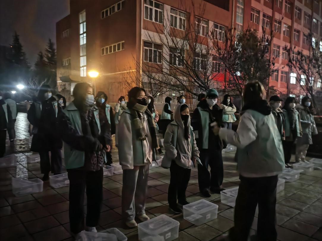 12月23日18:00,校党委学工部、校团委向各学院团总支发起志愿者招募令后,广大青年学子主动请缨,学生党员来了、入党积极分子来了、青年马克思主义者培养工程学员来了、团干部来了、团员来了……1个半小时之内快速集结了300余名志愿者。为了保障志愿者人身安全,1个小时内为应招志愿者做完了核酸检测,为开展志愿服务做好了准备。