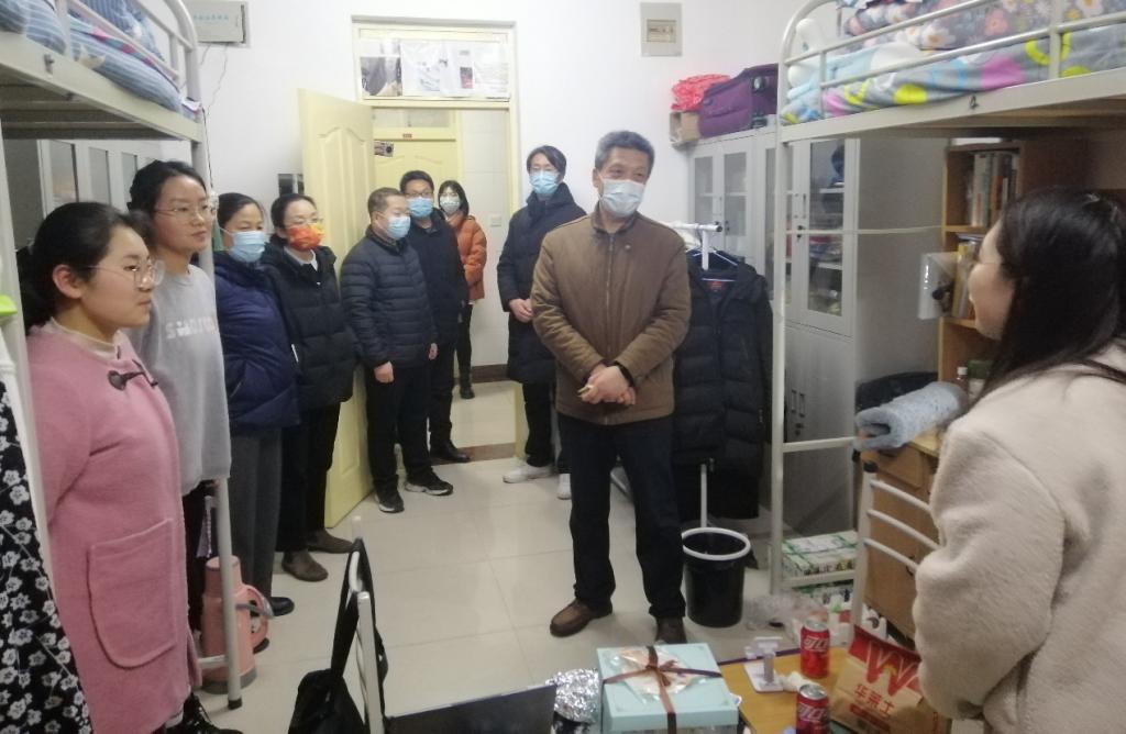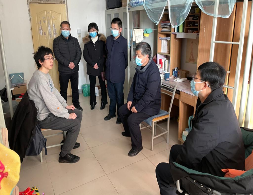 慰问过程中,校领导表示,保障师生生命安全、身体健康和校园安全稳定是学校的头等大事,同学们在抗击疫情的重大考验面前,顾大局、识大体,展现出了beat365官网学子积极、认真、负责的精神面貌。希望同学们积极配合属地政府和学校的防疫工作,不造谣、不信谣、不传谣,不聚集、勤洗手、常消杀,外出佩戴口罩,保持安全社交距离,做好个人健康防护。要合理安排学习时间,加强体育锻炼,遵守疫情防控管理规定,在新的一年中以梦为马、奋发图强,用勤奋和刻苦为青春增色添彩。