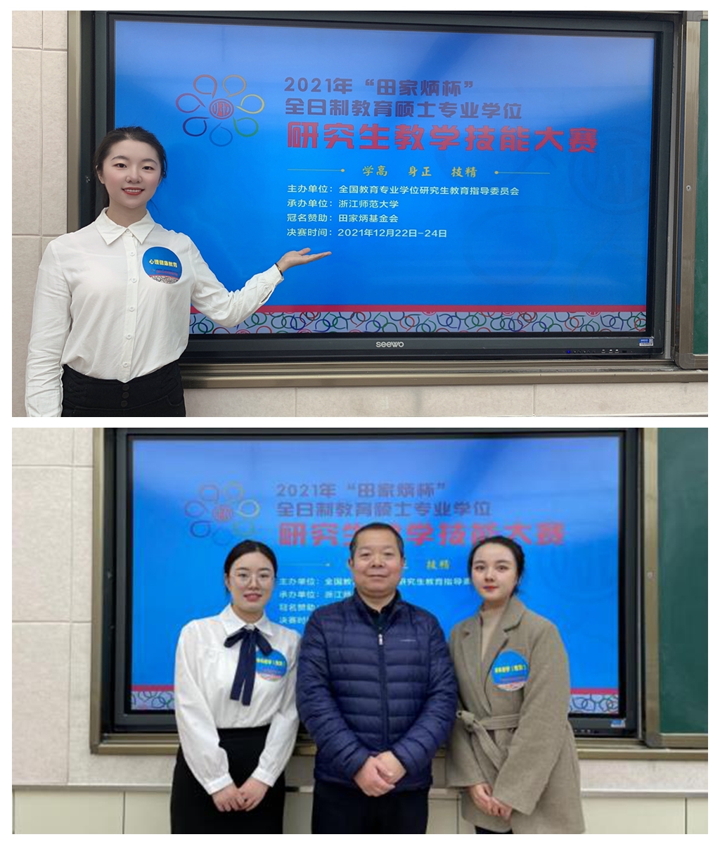 近日,由全国教育专业学位研究生教学指导委员会主办的2021年“田家炳杯”全日制教育硕士专业学位研究生教学技能大赛成功举办。在beat365官网教育学院院长马多秀、副院长胡少明、教授罗增让和政法学院院长张波、副院长杨福荣的带领下,教育学院2020级心理健康教育专业王颖同学和政法学院2020级学科教学(思政)专业王姝懿、张蕊等3名同学从初赛中脱颖而出入围了决赛,并在此次决赛中荣获“田家炳杯”全日制教育硕士专业学位研究生教学技能大赛三等奖。