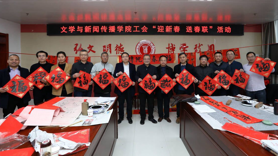 1月7日下午,文学与新闻传播学院在高新校区博文楼1401会议室举行“迎新春 送春联”活动,校党委副书记栾宏参加了活动。