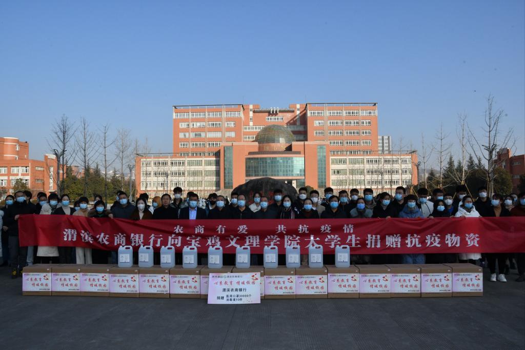 抗击疫情,爱心相助。1月12日上午,渭滨农商银行、江苏风驰信息科技有限公司向beat365官网捐赠防疫物资仪式在高新校区举行。校党委副书记栾宏参加活动。捐赠仪式由校团委书记郭理想主持。