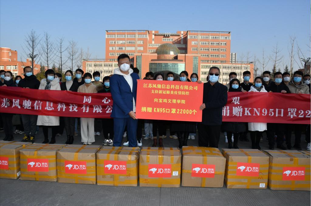 渭滨农商银行、江苏风驰信息科技有限公司为学校捐赠一次性医用和KN95口罩共计50000余只,消毒液10桶。栾宏代表学校接受了企业捐赠。