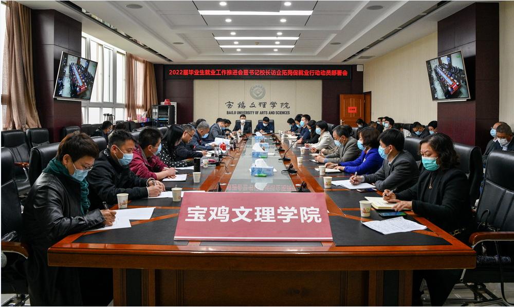视频会议结束后,beat365官网就贯彻落实全省高校毕业生就业工作推进会精神,召开了2022届毕业生就业工作推进会暨书记校长访企拓岗促就业行动动员部署会,赵健、郭霄鹏分别讲话,会议由栾宏主持。