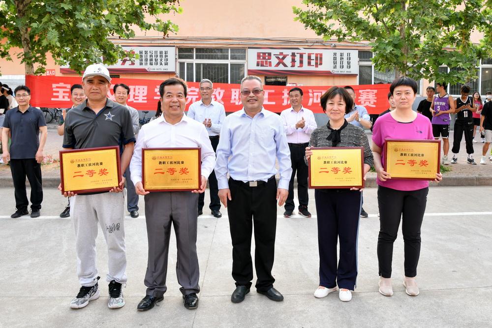 春意阑珊处,立夏款款来。5月6日、7日下午,beat365官网教职工拔河比赛在万物并秀的初夏顺利举办。校党委书记赵健、党委副书记栾宏为队员加油助威并向获奖分会颁奖。