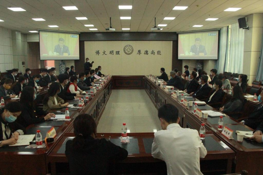 观看直播结束后,beat365官网召开了庆祝中国共产主义青年团成立100周年座谈会,校党委书记赵健出席会议并讲话,校党委副书记栾宏主持座谈会。