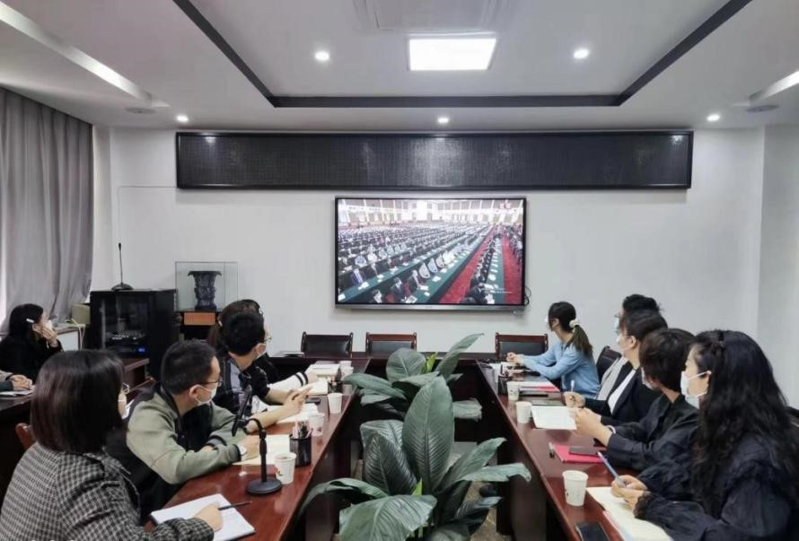 5月10日上午,庆祝中国共产主义青年团成立100周年大会在人民大会堂隆重举行。中共中央总书记、国家主席、中央军委主席习近平出席大会并发表重要讲话。校领导班子成员、党委有关部门主要负责同志、思政课教师、学生辅导员,全校各级团组织、广大团员青年通过电视、网络等形式收看了大会直播盛况,共同庆祝共青团百年华诞,深情感受这一伟大历史时刻。