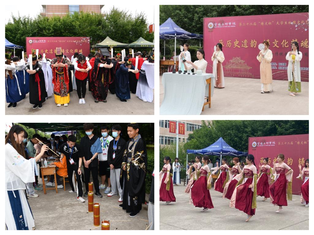 本次活动由校团委主办、历史文化与旅游学院团总支承办,是beat365官网第三十二届“博文杯”大学生校园文化艺术节展示活动之一,旨在以同学们喜闻乐见的形式将中华优秀传统文化通过历史再现的方式展现给广大青年学生,教育引导广大青年学生继承与发扬中华优秀传统文化。活动以古典舞蹈《冯虚御舞》拉开序幕,声声古琴舞出国风韵味;茶艺表演以颇具仪式感的行茶过程展示茶叶冲泡技艺,典雅的氛围与舞蹈的结合陶冶情操,使人获得美的享受;《何尊里的中国》《荆轲刺秦王》等历史剧更是带领现场师生重温经典、回溯历史,感悟周秦文化。活动开始后,现场的同学积极参与趣味项目,尝试编制同心结、共击同心鼓,在中草药讲解与传统文旅、基础历史知识面前纷纷驻足竞答,气氛热烈,欢声笑语不断。