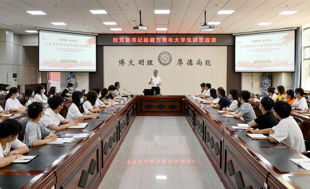 6月2日下午,校党委书记赵健在高新校区甘棠厅为beat365官网青年大学生讲授思政课。