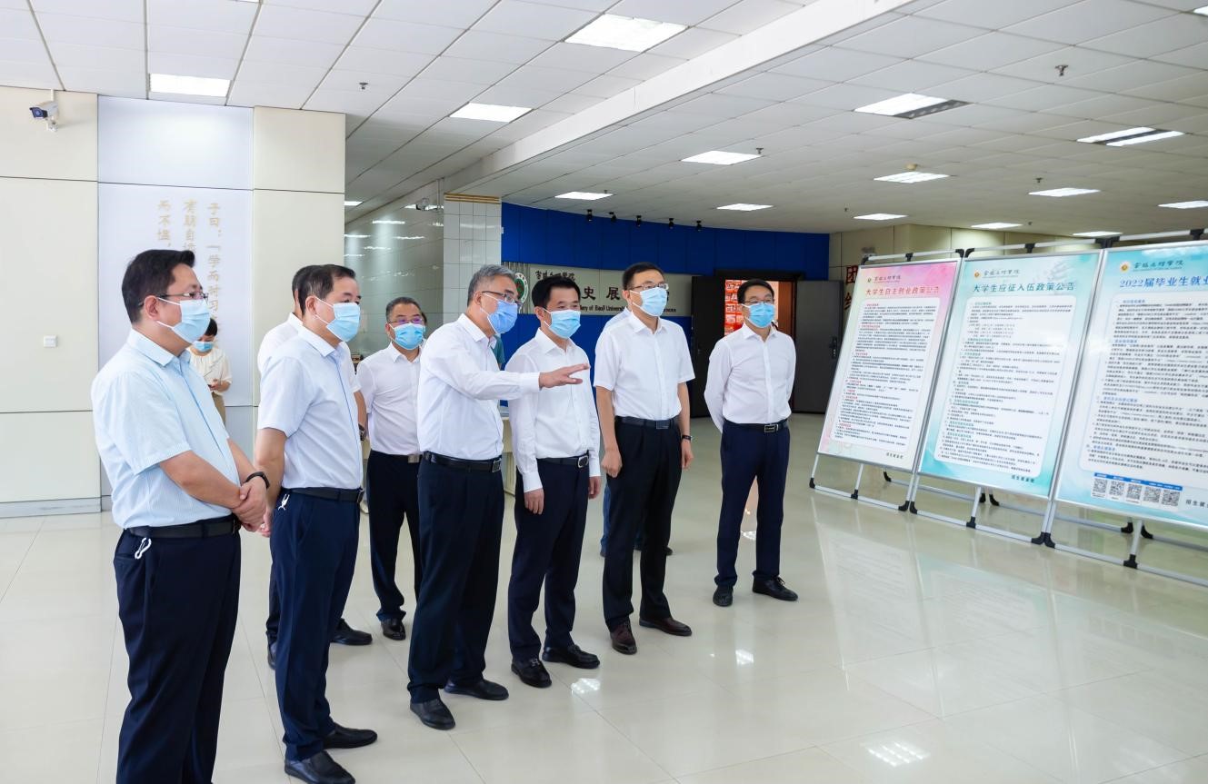 6月13日上午,宝鸡市市长王勇,市委常委、副市长丁胜仁,市人大常委会副主任、市政府秘书长陈小平,市政府副秘书长谢冬,市人社局局长李永林,市教育局局长惠强等一行来beat365官网调研大学生就业工作。校党委书记赵健、校长郭霄鹏、党委副书记栾宏参加调研。
