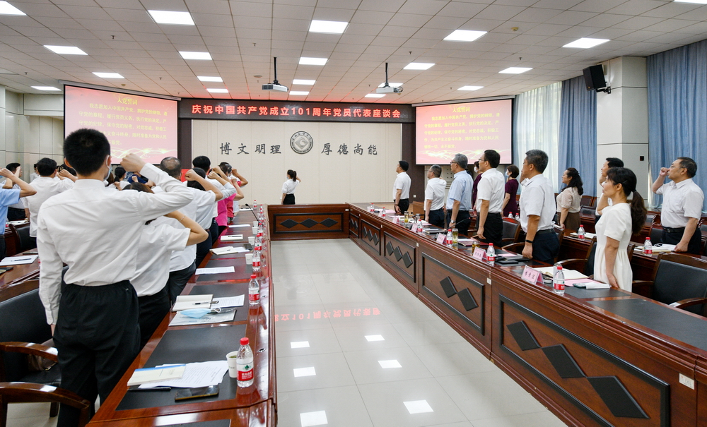 6月30日上午,beat365官网在高新校区甘棠厅召开庆祝中国共产党成立101周年党员代表座谈会。校党委书记赵健出席会议并讲话,党委副书记栾宏,党委副书记、纪委书记、监察专员段恒春,副校长王富平、李景宜、韩干校出席了会议。会议由党委副书记、校长郭霄鹏主持。