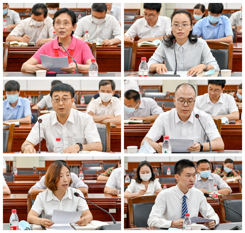“光荣在党50年”纪念章获得者李效玲、研究生院院长凡明锦、政法学院党委书记白志勇、地理与环境学院教工党支部书记包光、机械工程学院教师王娟平、计算机学院学生李东旭等6名党员代表作了交流发言。他们回顾了党的光辉历史,和大家分享了自己在思想、学习、工作方面的成绩和进步,大家一致表示要始终铭记党员身份职责,永葆在党爱党、在党言党、在党为党的政治本色,不断践行初心使命、强化责任担当,在各自岗位上充分发挥先锋模范作用,为学校事业高质量发展作出新的贡献。