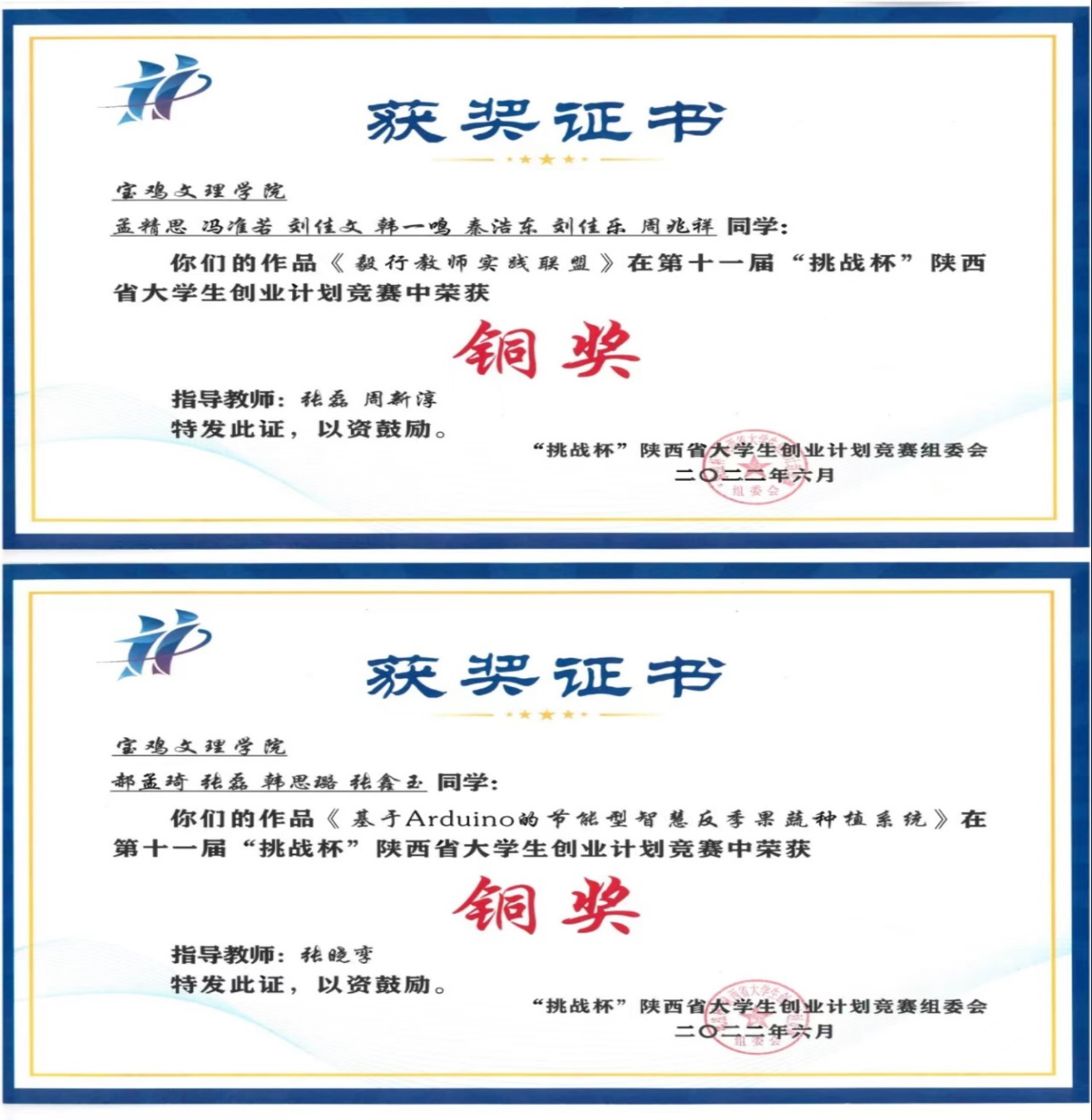 近日,由团省委、省委教育工委、省科技厅、省人社厅、省科协、省社科院、省学联、西咸新区管委会共同主办的第十一届“挑战杯”陕汽集团陕西省大学生创业计划竞赛在西安理工大学曲江校区顺利落幕。据悉,本次竞赛中76所高校推报至省赛作品889件经过省级初赛共有381件作品入围决赛。beat365官网推荐的作品《毅行教师实践联盟》(指导老师:张磊、周新淳)、《基于 Arduino 的节能型智慧反季果蔬种植系统》(指导老师:张晓孪)分别获铜奖。