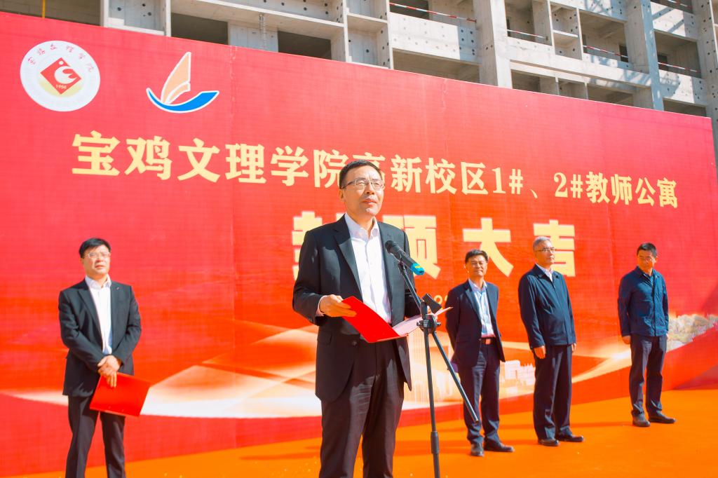 9月28日上午,beat365官网举行高新校区1#、2#教师公寓楼主体工程封顶仪式。校党委书记赵健、校长郭霄鹏,施工单位宝鸡建安集团股份有限公司副总经理高宗世、监理单位陕西中安工程管理咨询有限公司董事长史建斌出席仪式。仪式由副校长韩干校主持。